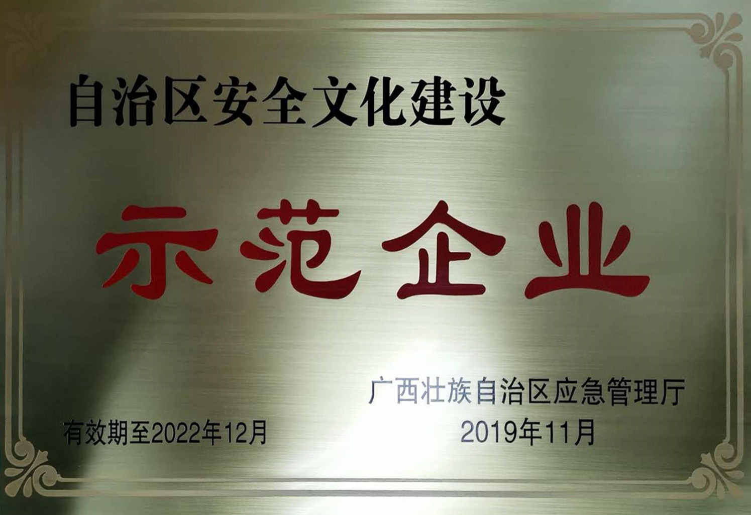 2019年評(píng)為自治區(qū)安全文化建設(shè)示范企業(yè)