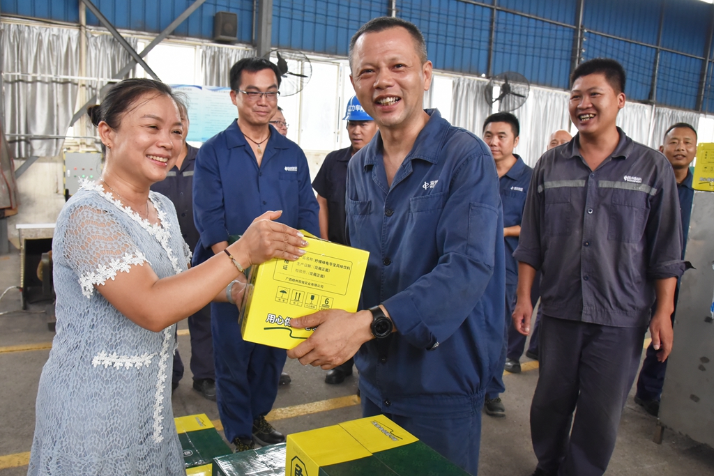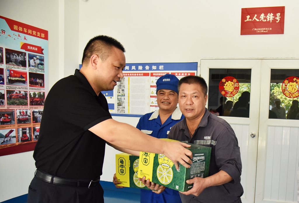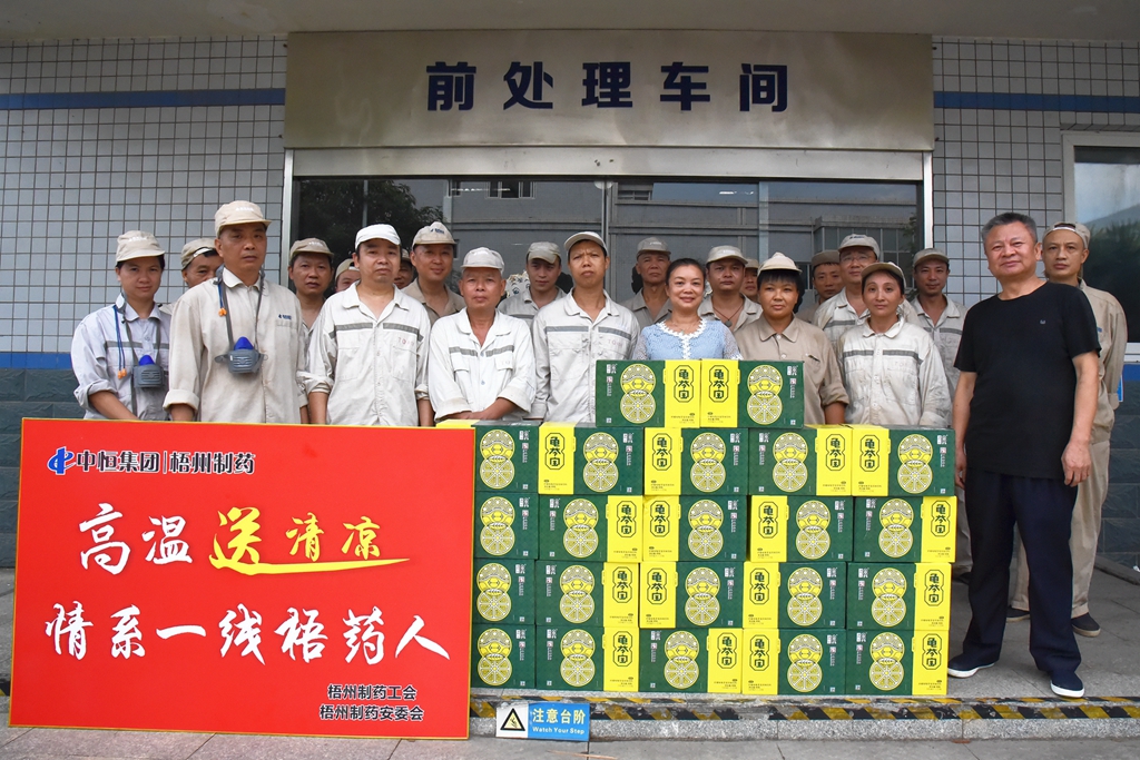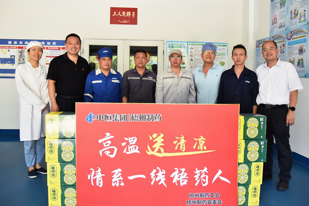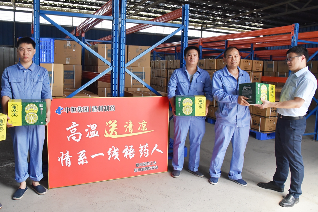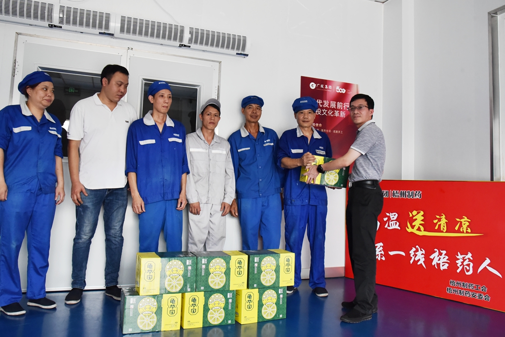 “天氣這么熱,大家辛苦了!”“注意自我保護(hù),記得多喝水!”“崗位都備有防中暑藥品,主任們要留意職工的身體狀態(tài), 合理安排休息。”近日,梧州制藥領(lǐng)導(dǎo)班子分別帶上清涼飲品,到各車間慰問奮戰(zhàn)在高溫崗位的職工,聲聲叮嚀,讓職工們在盛夏中感受到了陣陣清涼。