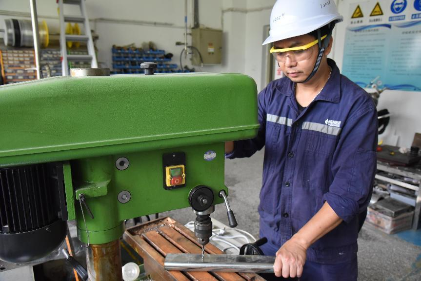 易健華是固體車間維修班的一名維修工,自2008年加入梧州制藥以來,先后在多個車間擔(dān)任電工、維修工,由于他的維修技術(shù)過硬,大家都親切地笑稱他是一名手到病除的“設(shè)備醫(yī)生”。