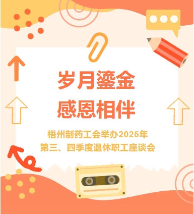 歲月鎏金感恩相伴梧州制藥工會舉辦2025年第三、四季度退休職工座談會近日,梧州制藥工會精心組織舉辦2025年下半年退休職工座談會。公司領(lǐng)導(dǎo)、工會及相關(guān)部門代表與退休職工歡聚一堂,共憶奮斗歲月、共話公司發(fā)展、共