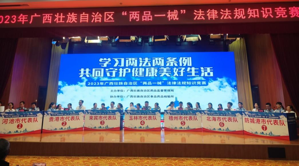 7月13日,由梧州制藥員工代表——質(zhì)量控制部呂金慧、質(zhì)量保證部李佳霖與梧州市場監(jiān)督管理局監(jiān)管人員組成的梧州市代表隊(duì)參加廣西壯族自治區(qū)“兩品一械”法律法規(guī)知識競賽,憑借過硬的專業(yè)知識、迅速