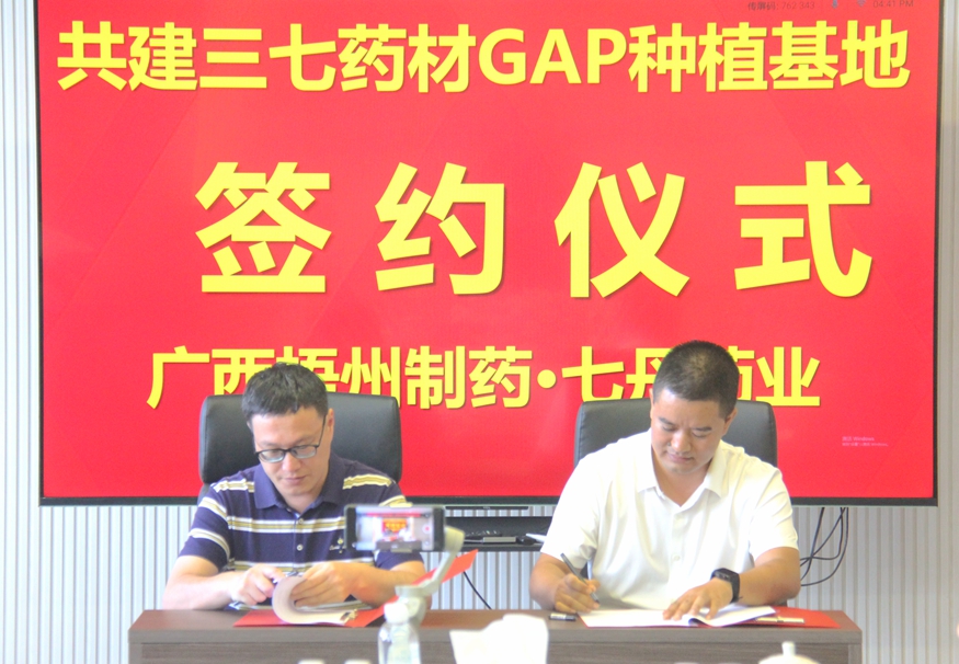 近日,梧州制藥與云南七丹藥業(yè)股份有限公司合作共建三七GAP種植基地簽約儀式在七丹藥業(yè)總部隆重舉行。 在簽約儀式前,梧州制藥副總經(jīng)理麥志雄與中恒中藥材公司總經(jīng)理胡冰等
